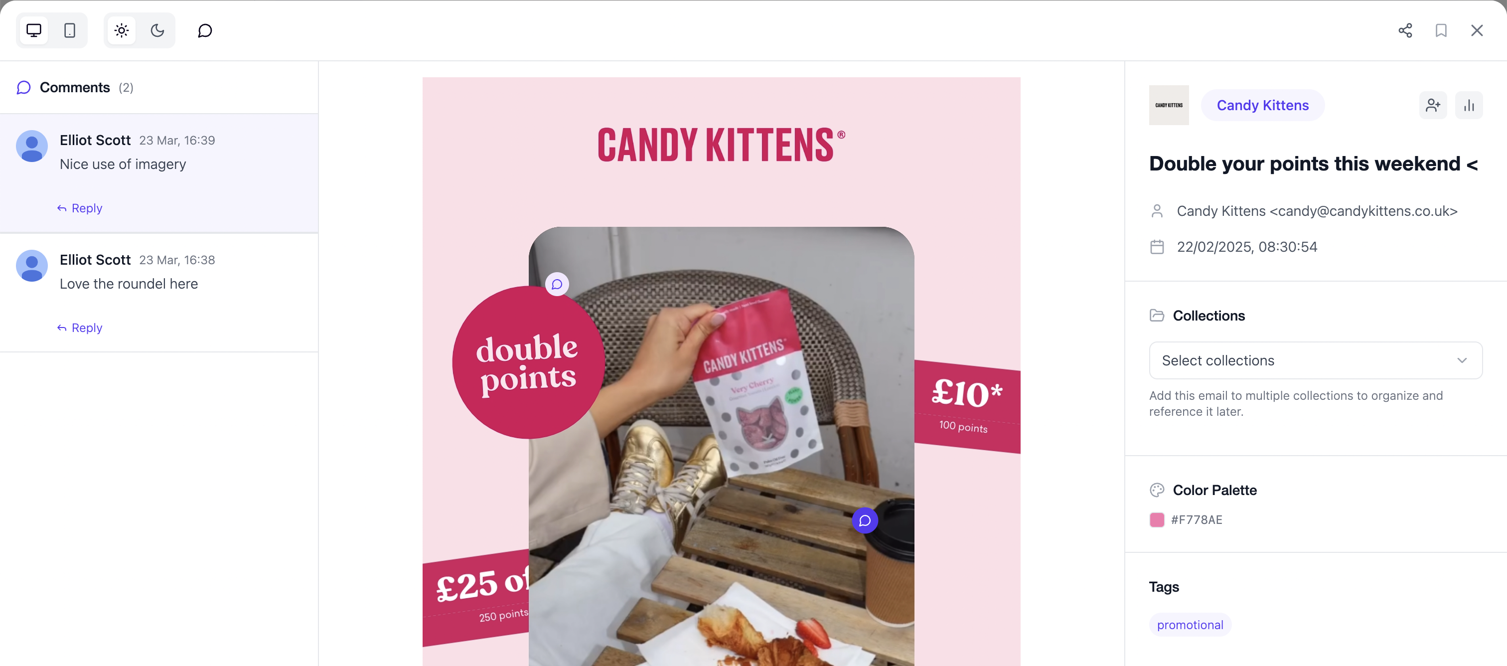 Leave comments and share emails for your team or clients, directly within emailedit.